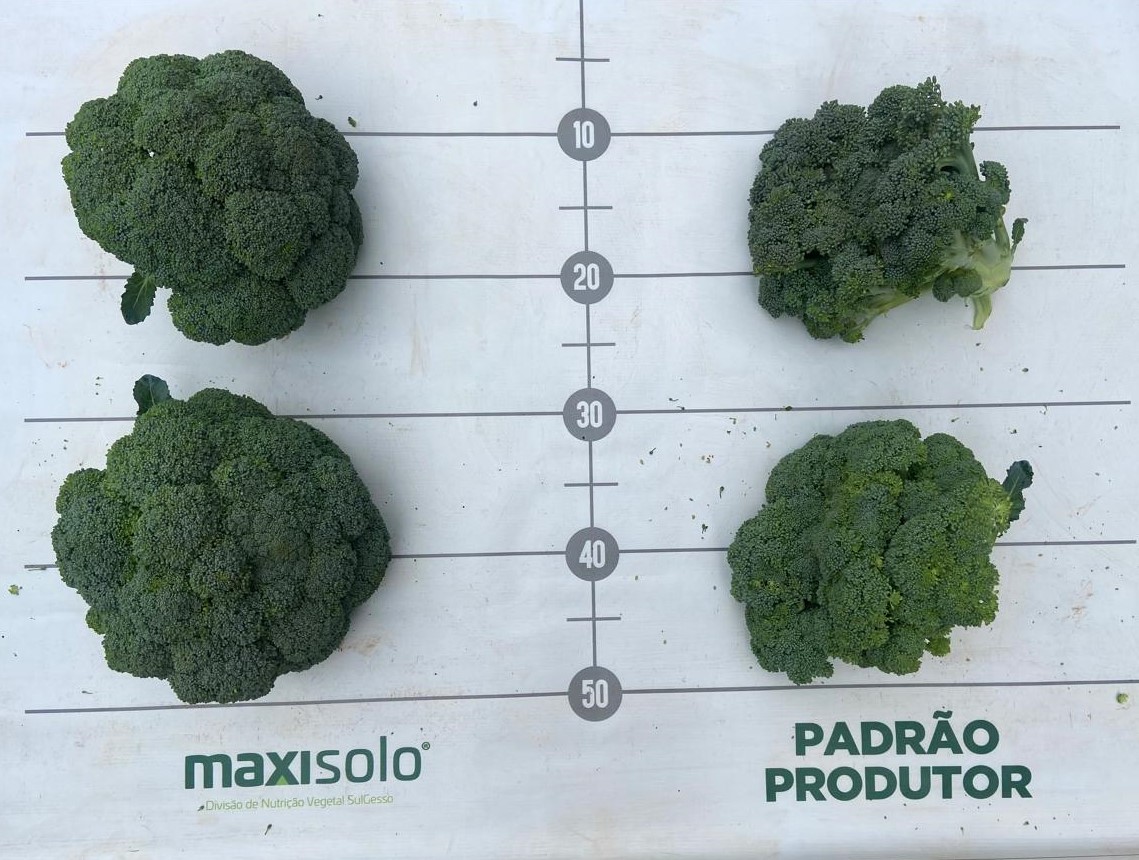 O agrônomo completa: “Boro e Cálcio tem um papel fundamental para as plantas estão ligados no desenvolvimento e multiplicação celular, nos brócolis tem-se uma alta resposta a estes nutrientes, em caso de deficiência, a flor fica com um vazio (Ar) no talo da flor, implicando no menor rendimento. Com boro e cálcio, esse vazio é preenchido, por exemplo, com 10 brócolis, o peso é maior nas plantas com SulfaBor, porque não tem esse espaço com ar, resultando em maior rendimento”, o valor a receber da indústria está diretamente ligado ao rendimento de cada talão.