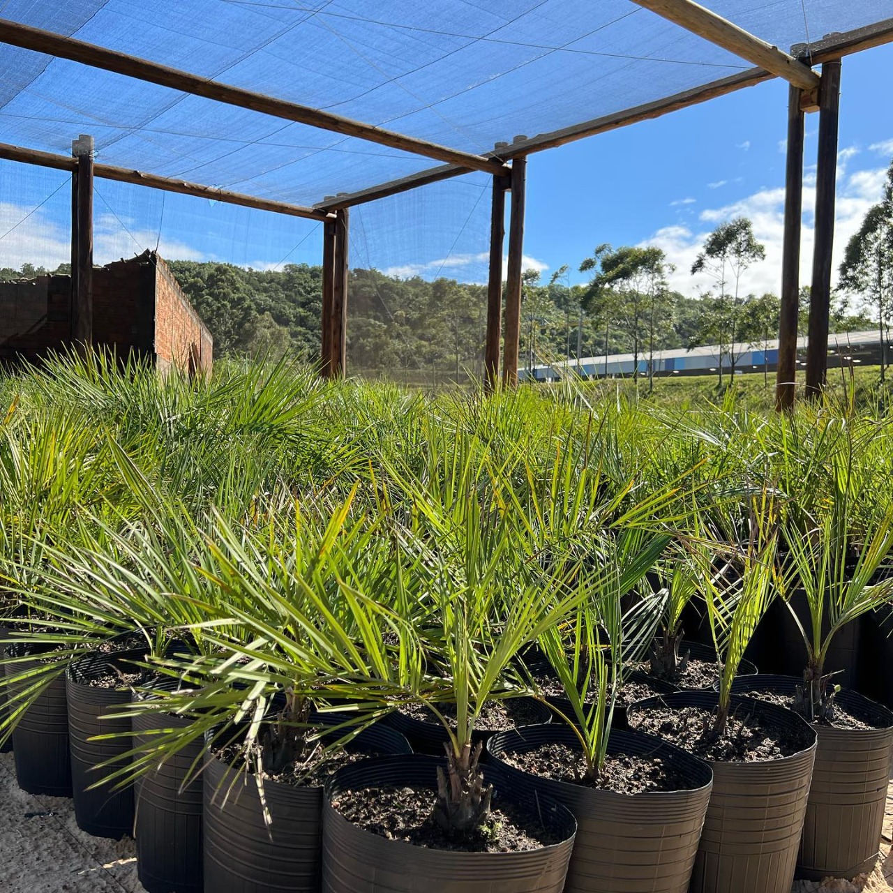 As sementes germinadas saem da câmara com 60 dias, permanecendo por mais cerca de 20 dias nas caixas chamadas “gerbox” e depois são transplantadas para vasos. Após esse período, as mudas estão prontas para serem levadas para o viveiro da empresa, espaço projetado para cultivar plantas nativas como o butiá. No viveiro, permanecem por aproximadamente 12 meses a 2 anos, até estarem prontas para serem plantadas junto à natureza.